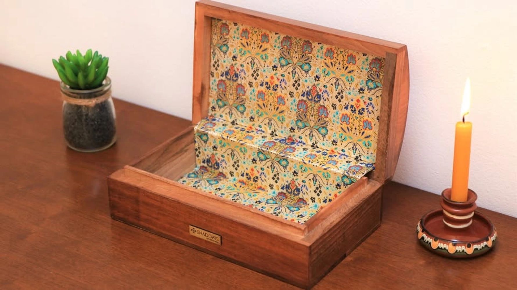 Every Handcrafted creation is a unique masterpiece made with Damascene Brocade and crushed mother of pearl.